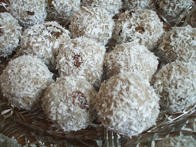 3 db érett banánból, egy csomag kókuszőrleményből, és 3-4 evőkanál áztatott mazsolából, és frissen facsart citromlevéből készítettem. A kókuszt megdaráltam finom szemcsésre, és összekevertem minden hozzávalót. Kevés sztíviát adtam még hozzá, de alapvetően a mazsola és leve, és a banán nagyon édes.